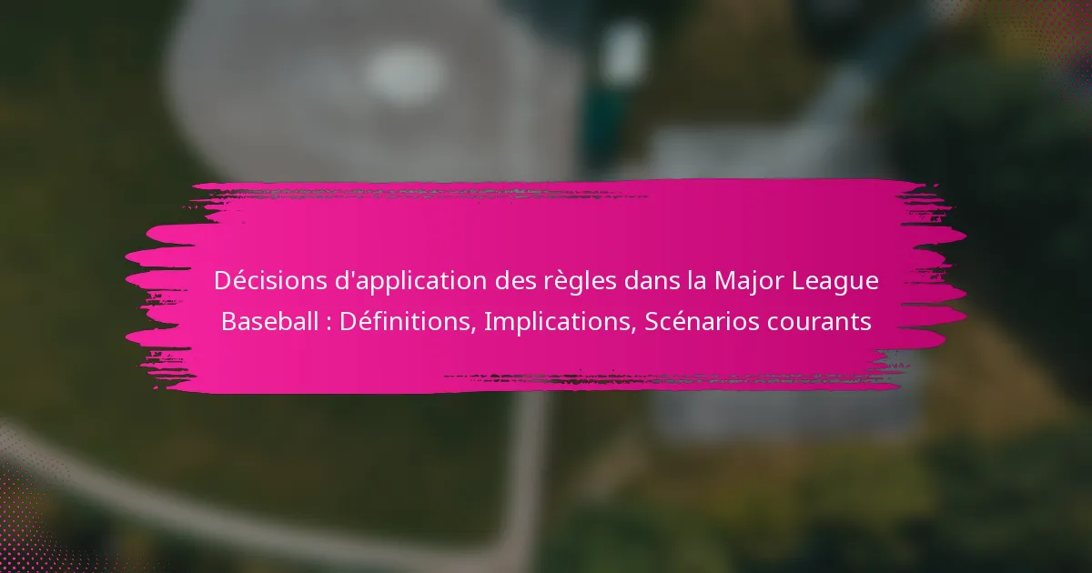 Les décisions d’expulsion dans la Major League Baseball (MLB) sont des actions critiques prises par les arbitres pour retirer des joueurs, des entraîneurs ou des managers d’un match en raison de violations des règles ou de comportements antisportifs. Ces décisions peuvent avoir des implications profondes sur l’issue du match, affectant la dynamique de l’équipe, la performance des joueurs et l’engagement des fans. Les scénarios courants menant à des expulsions incluent des disputes animées sur des décisions et des manifestations de comportements antisportifs, qui peuvent perturber le déroulement du match et susciter des controverses parmi les joueurs et les fans.